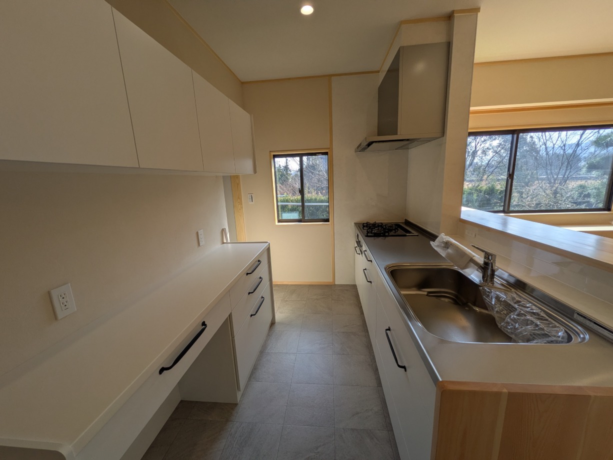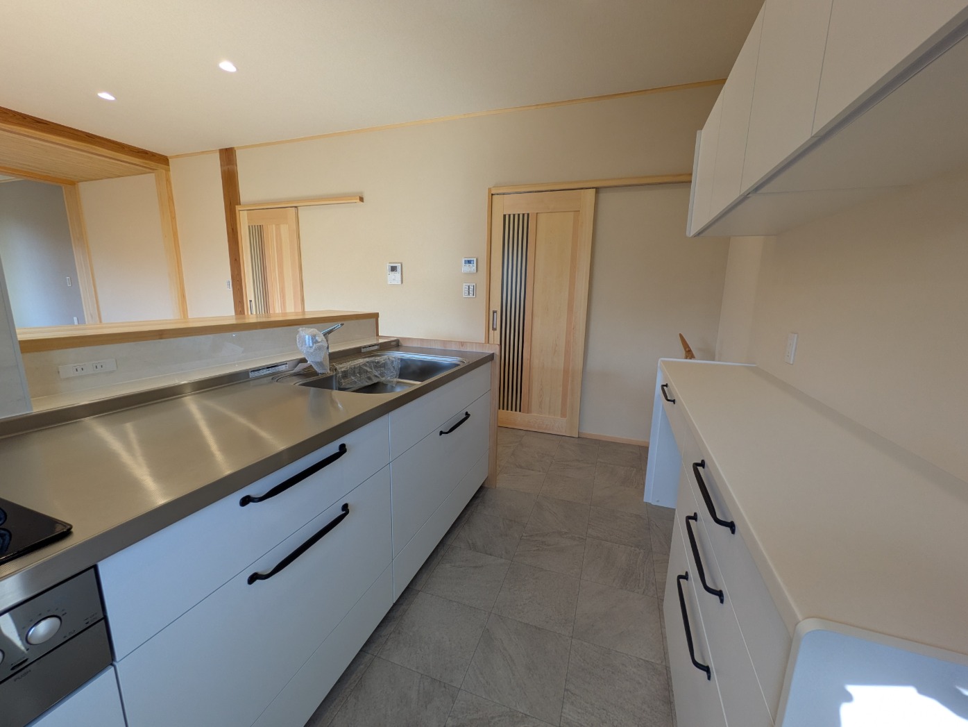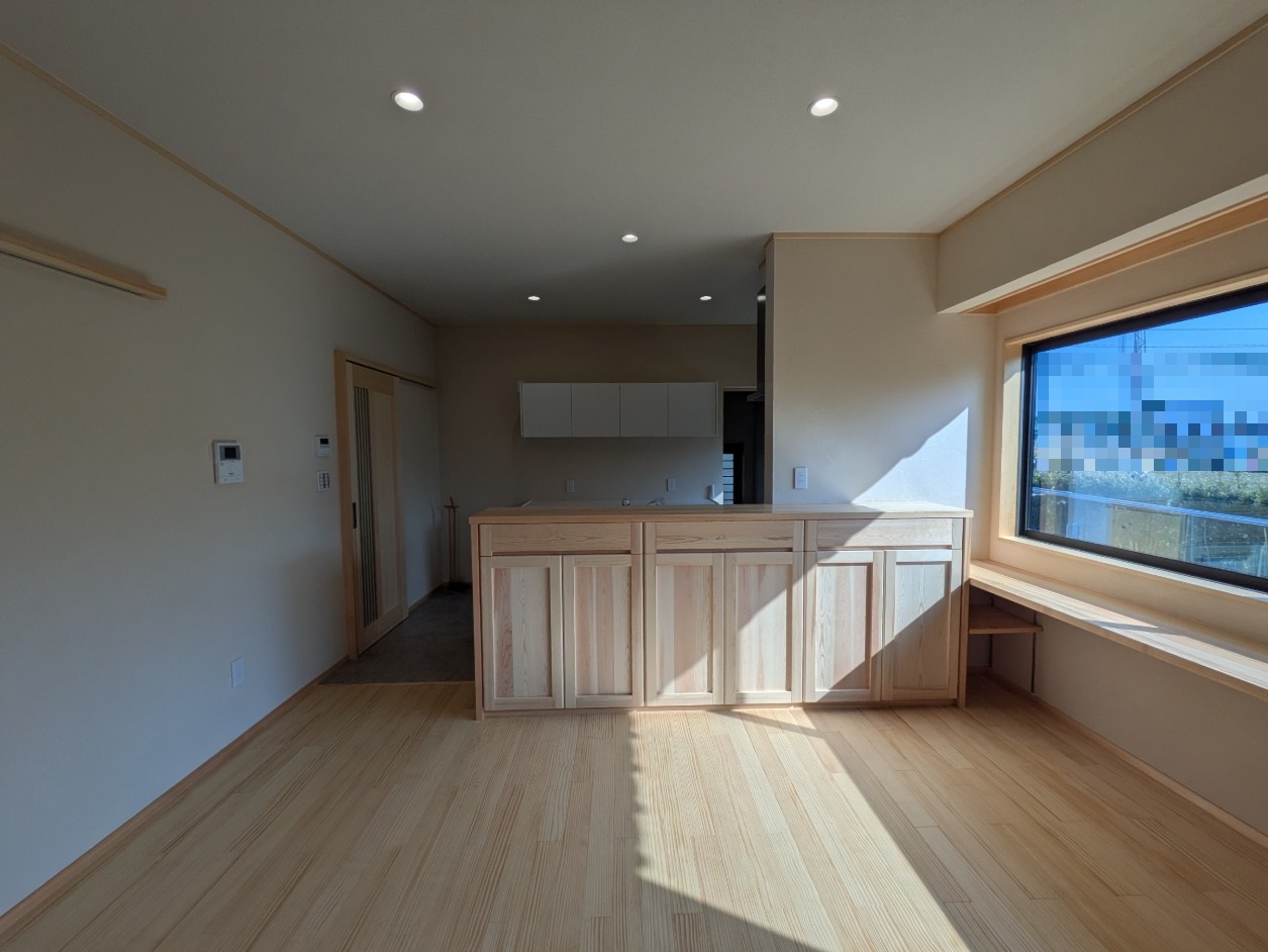 対面キッチンのカウンター部分はこだわりの造作家具を設置。