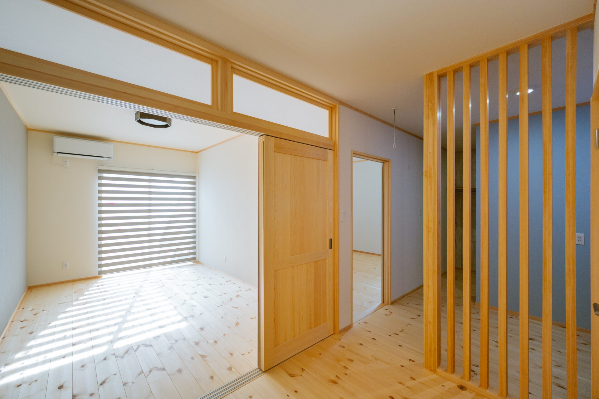 暗くなる廊下部分は明り取りのランマを設けて