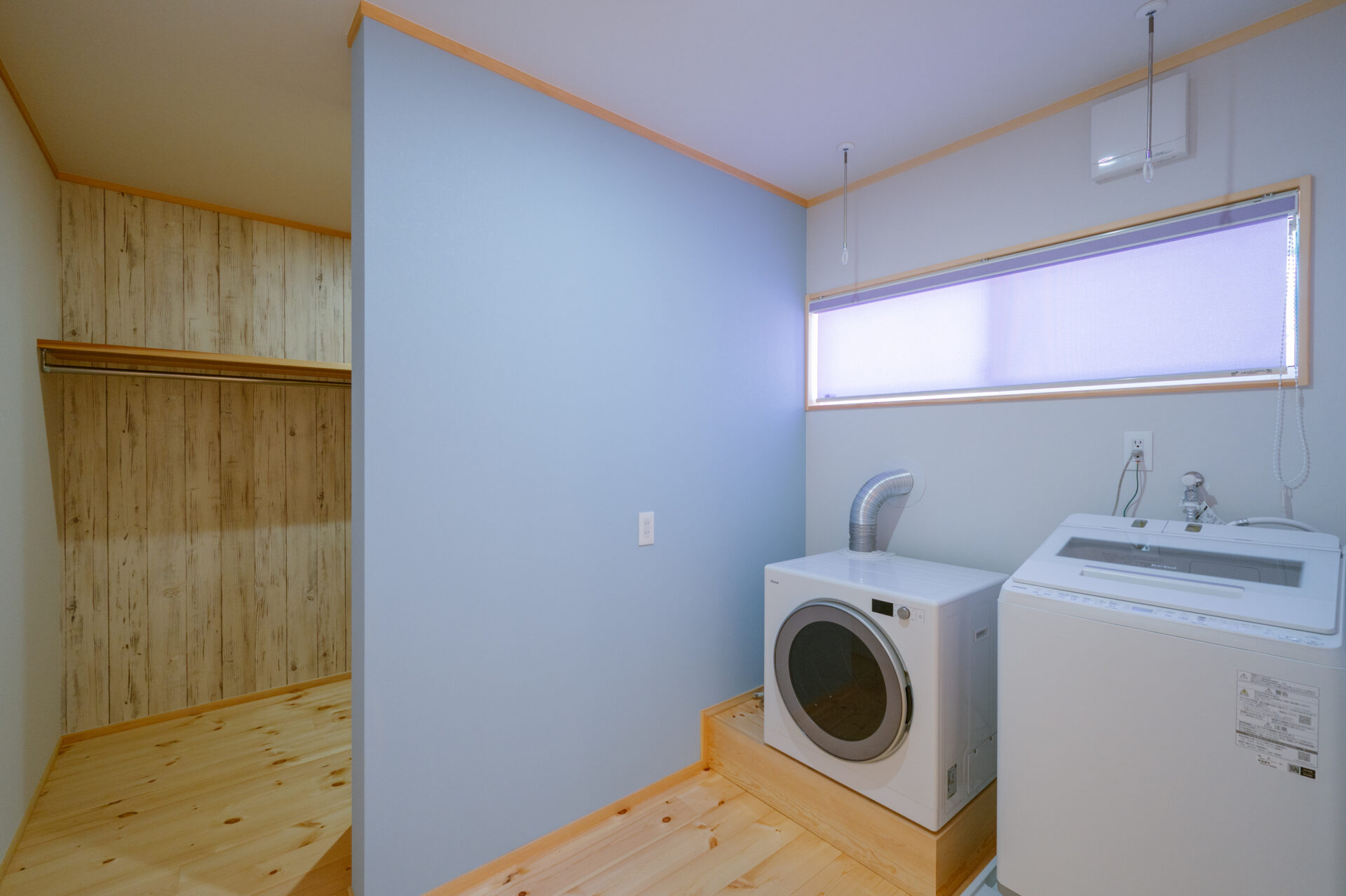 ランドリーコーナーの隣は乾いた洗濯物を