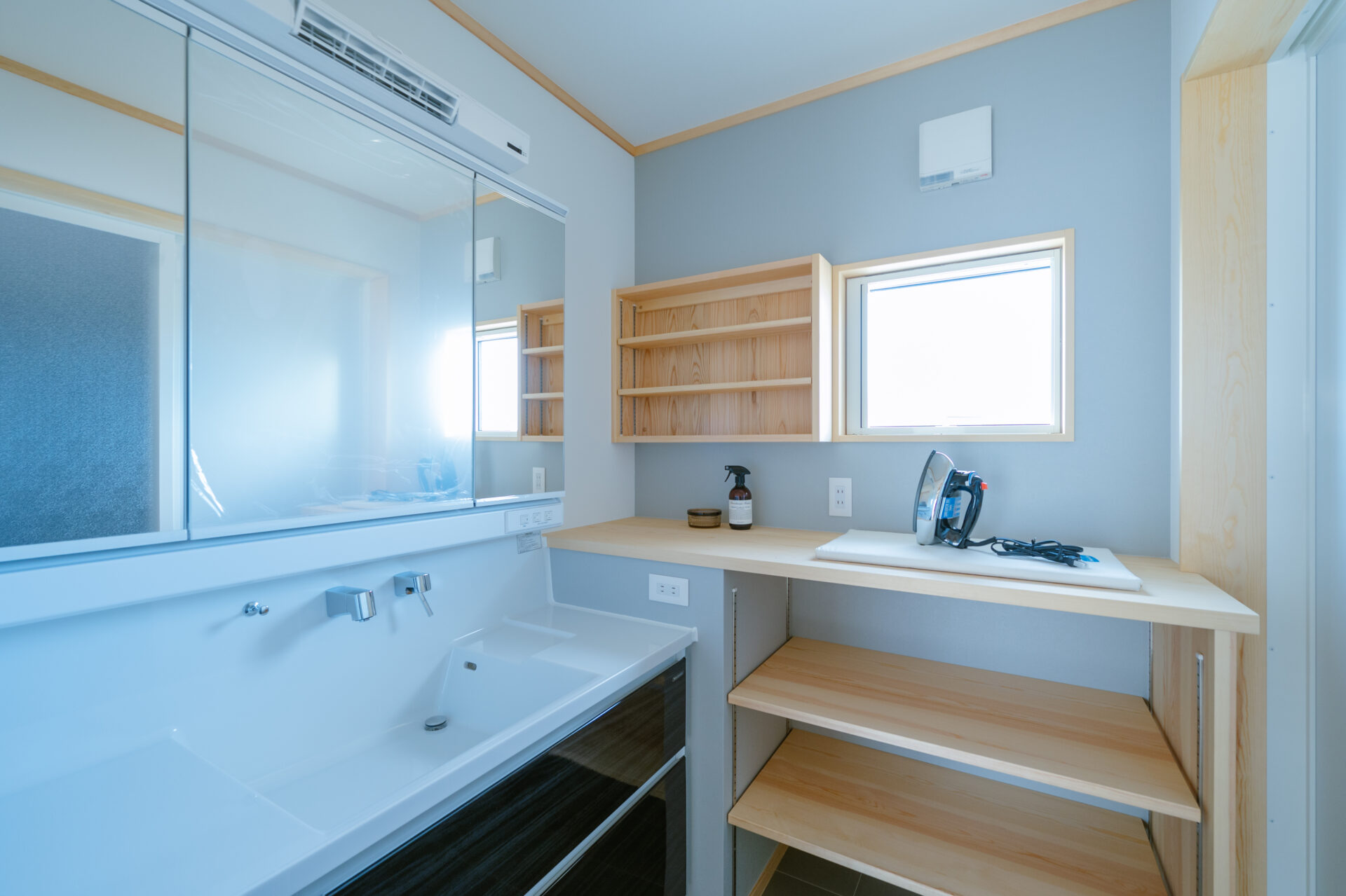洗面室はメーカーのユニット洗面化粧台に