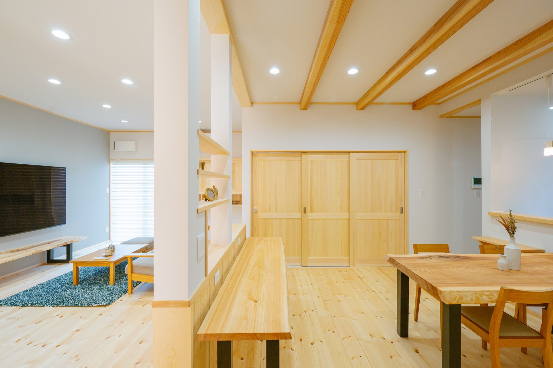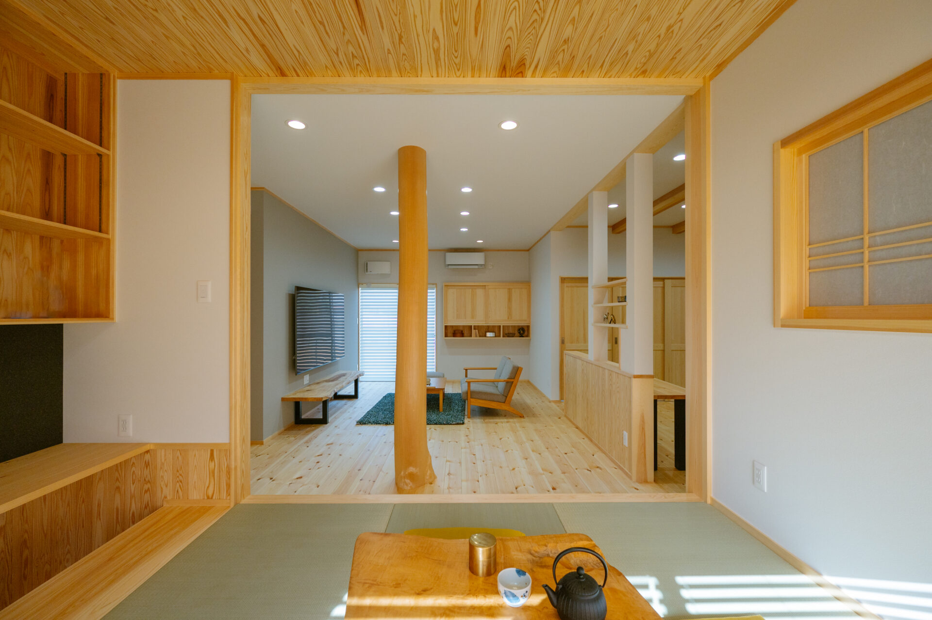 リビングでどうしても撤去出来ない柱は丸太柱におきかえ