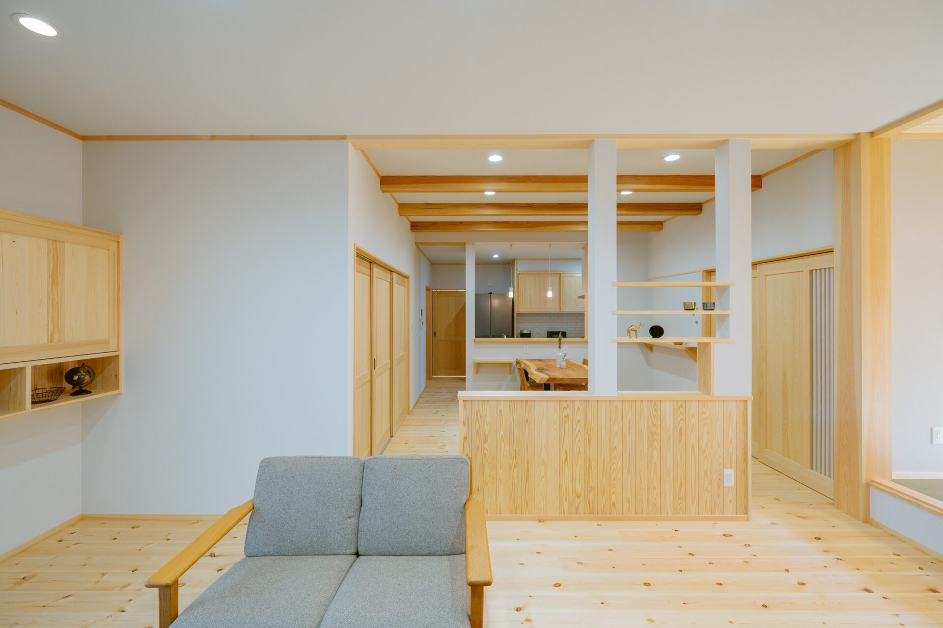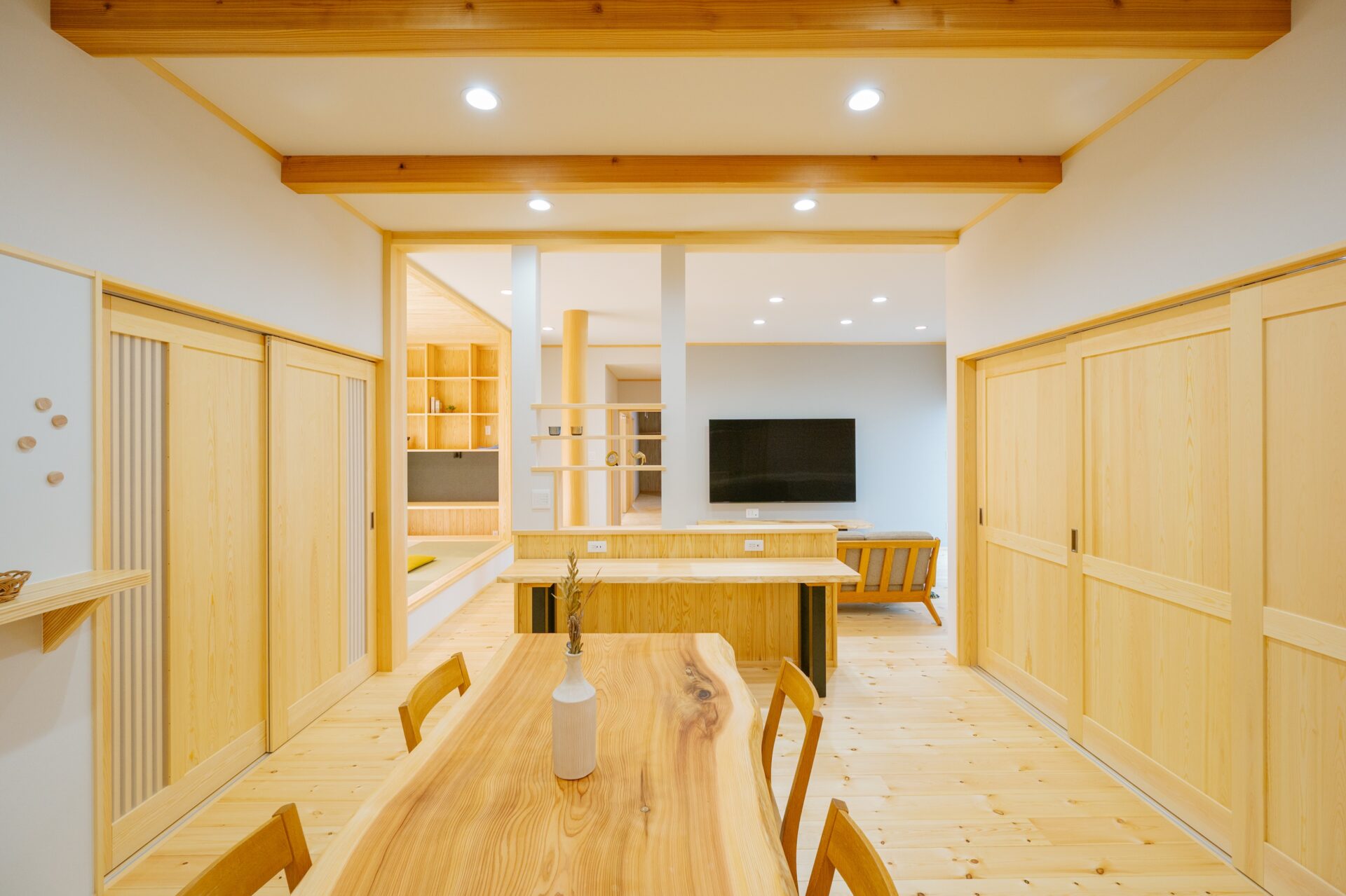 ダイニングスペースは隣接する洋室と和室の壁を