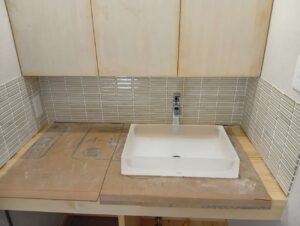 手洗いの洗面ボールですが、普段は、色?がよくあるホワイトですが、今回取付したものは透明です。