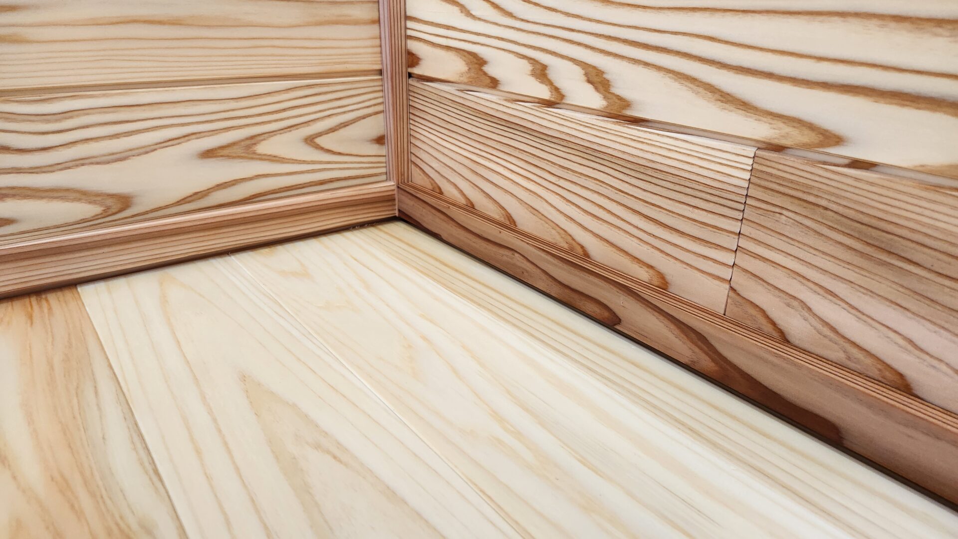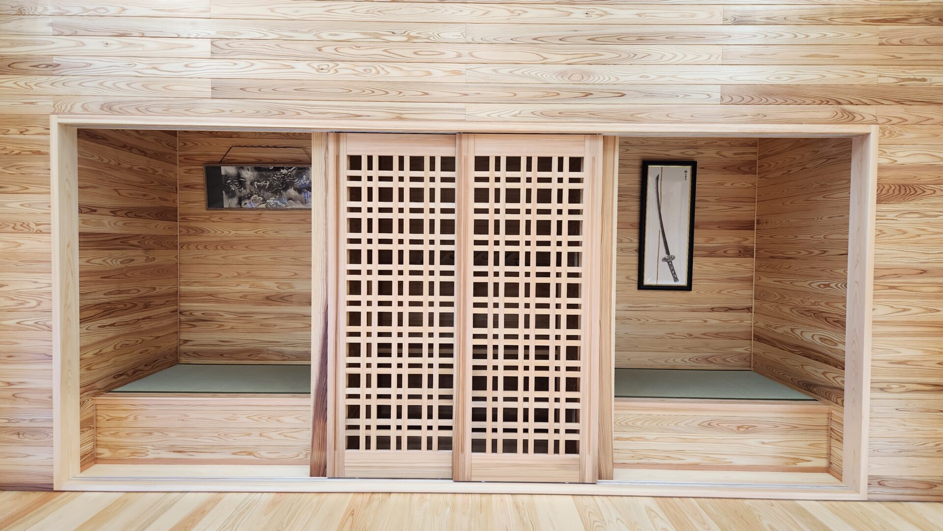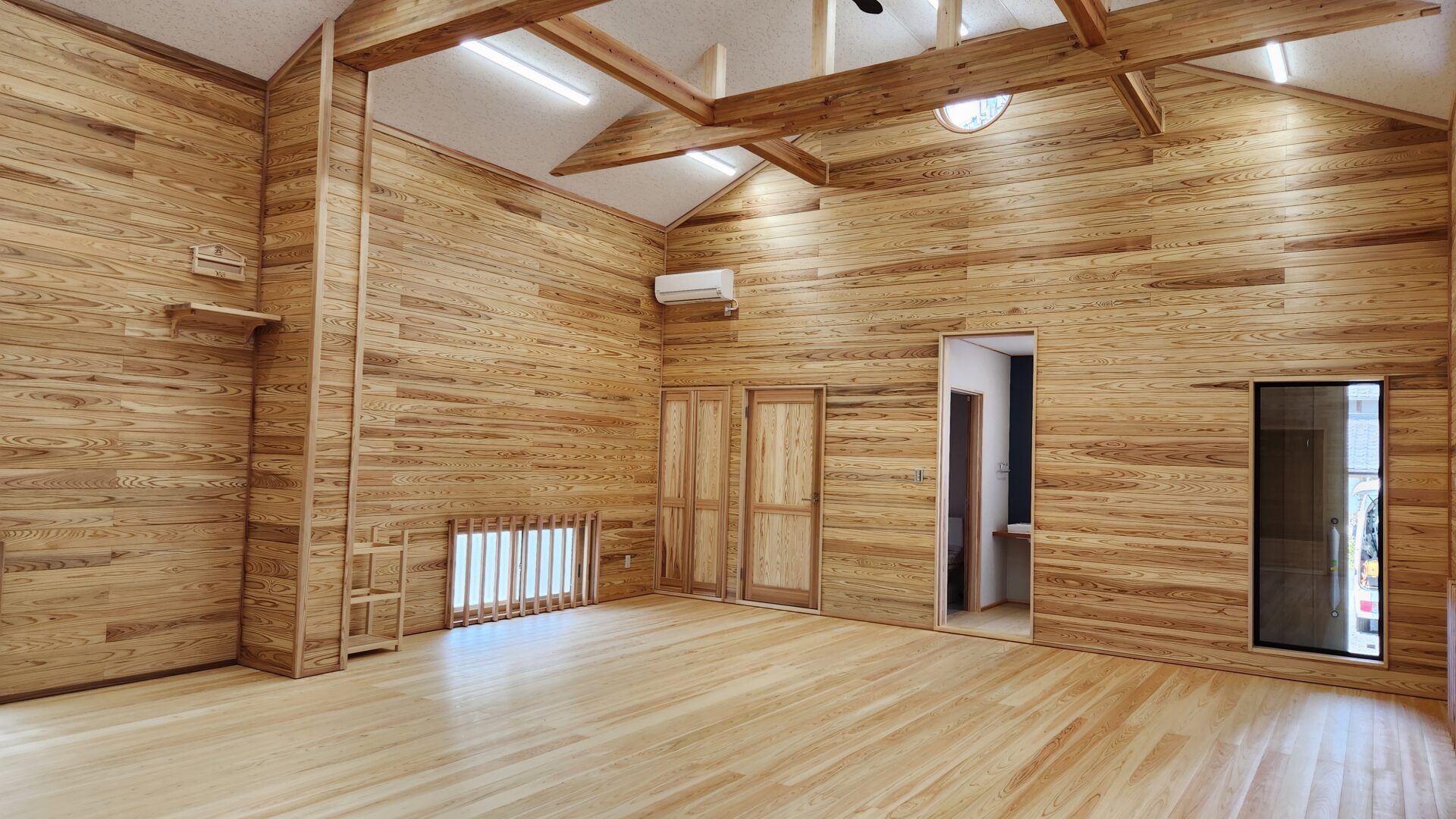 内装の床は桧、壁は杉の板張りです。