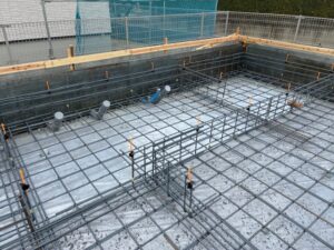 写真にあるように、基礎の内部には細かく鉄筋が組まれています。