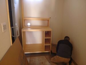 自社工場で作った家具を設置して。。