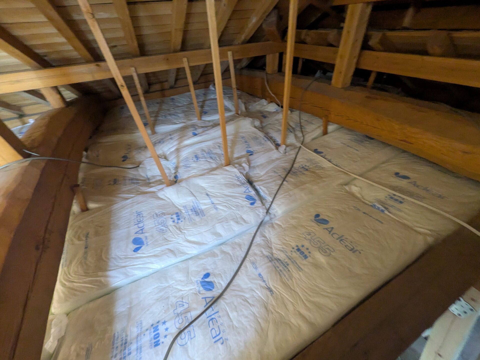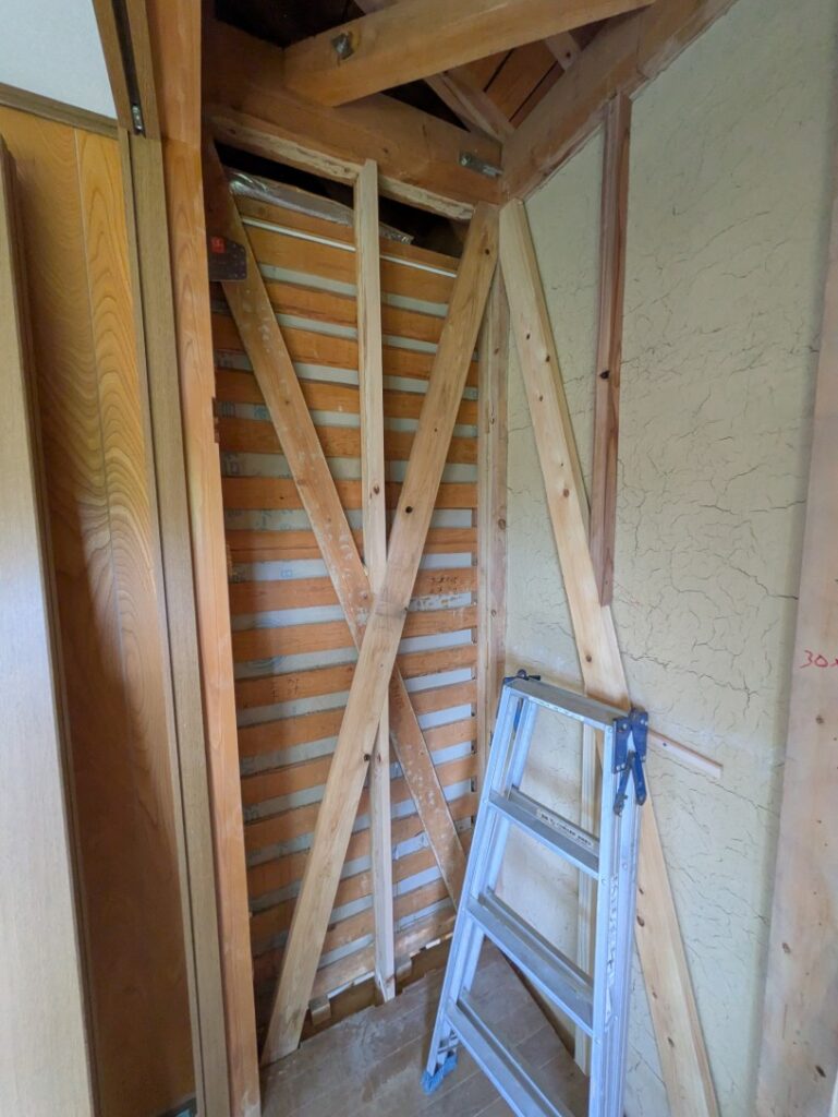 屋根面は天井を剝がないので、点検口から天井裏へ上がり