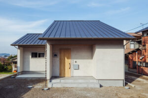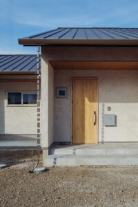 外観はそとん壁の126番にガルバリウムの屋根を葺いています。