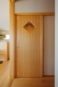 家具と併せて建具も同じヒノキの柾目模様になっています。