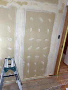 骨組みが完成したら、次は石膏ボード張りの工程です。