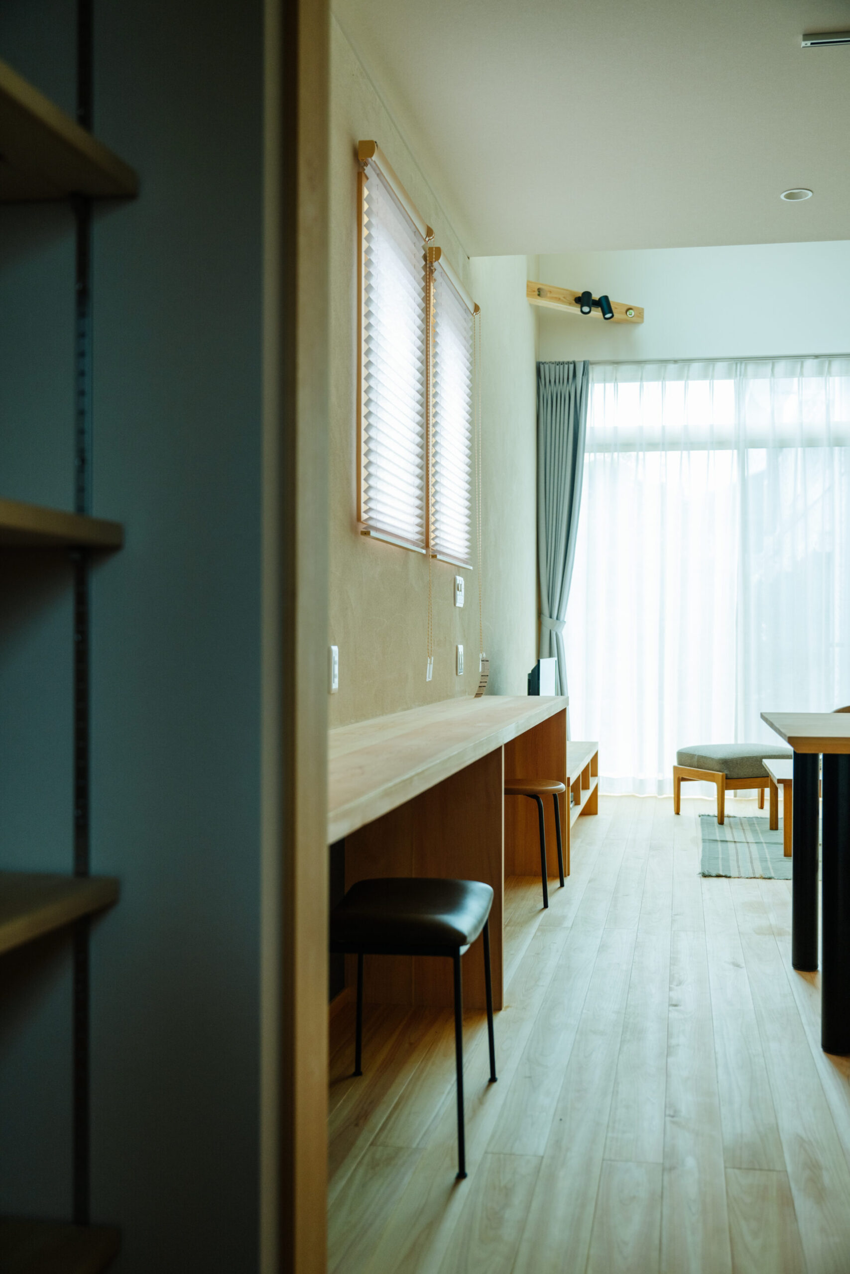 ダイニングテーブルの横には、お子様の勉強スペースとしてカウンターを設けました。