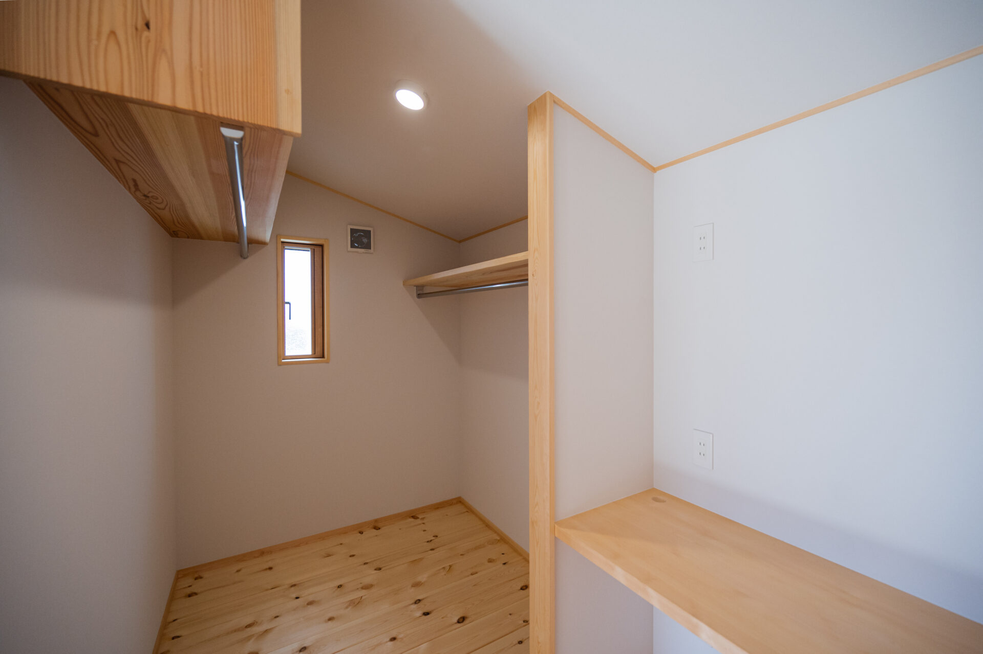 玄関の正面からは見えずらい位置に可動棚を設置しています。