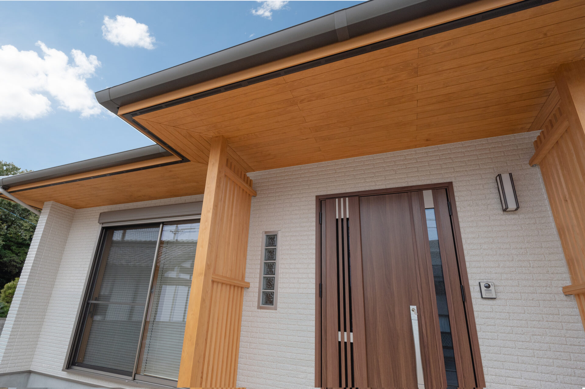 軒天にあしらった杉板張りで、木の温もりも感じられます。