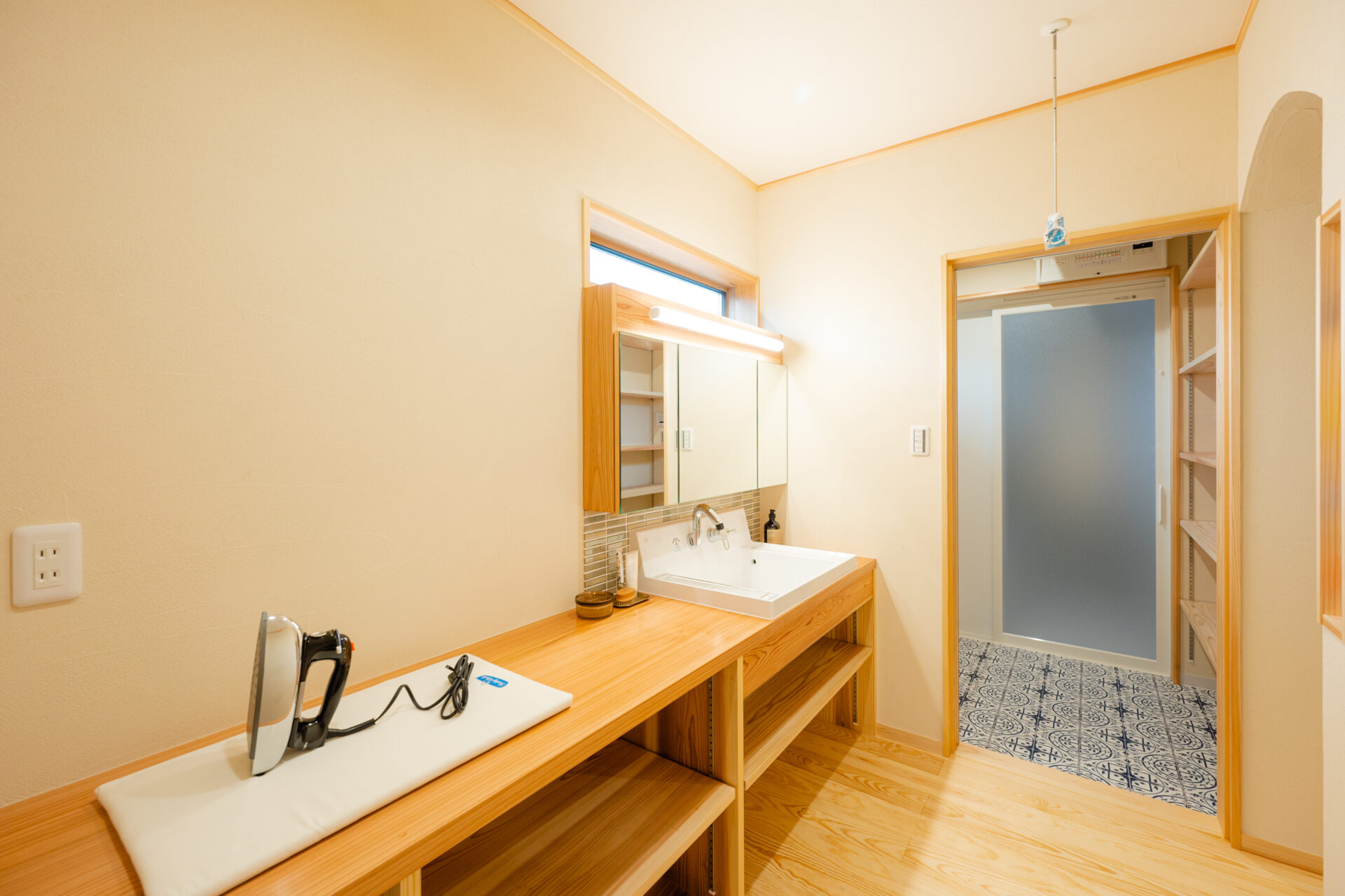 洗面所兼ランドリースペースとなっているため、洗面台のカウンターの続きで作業台としても使えます。