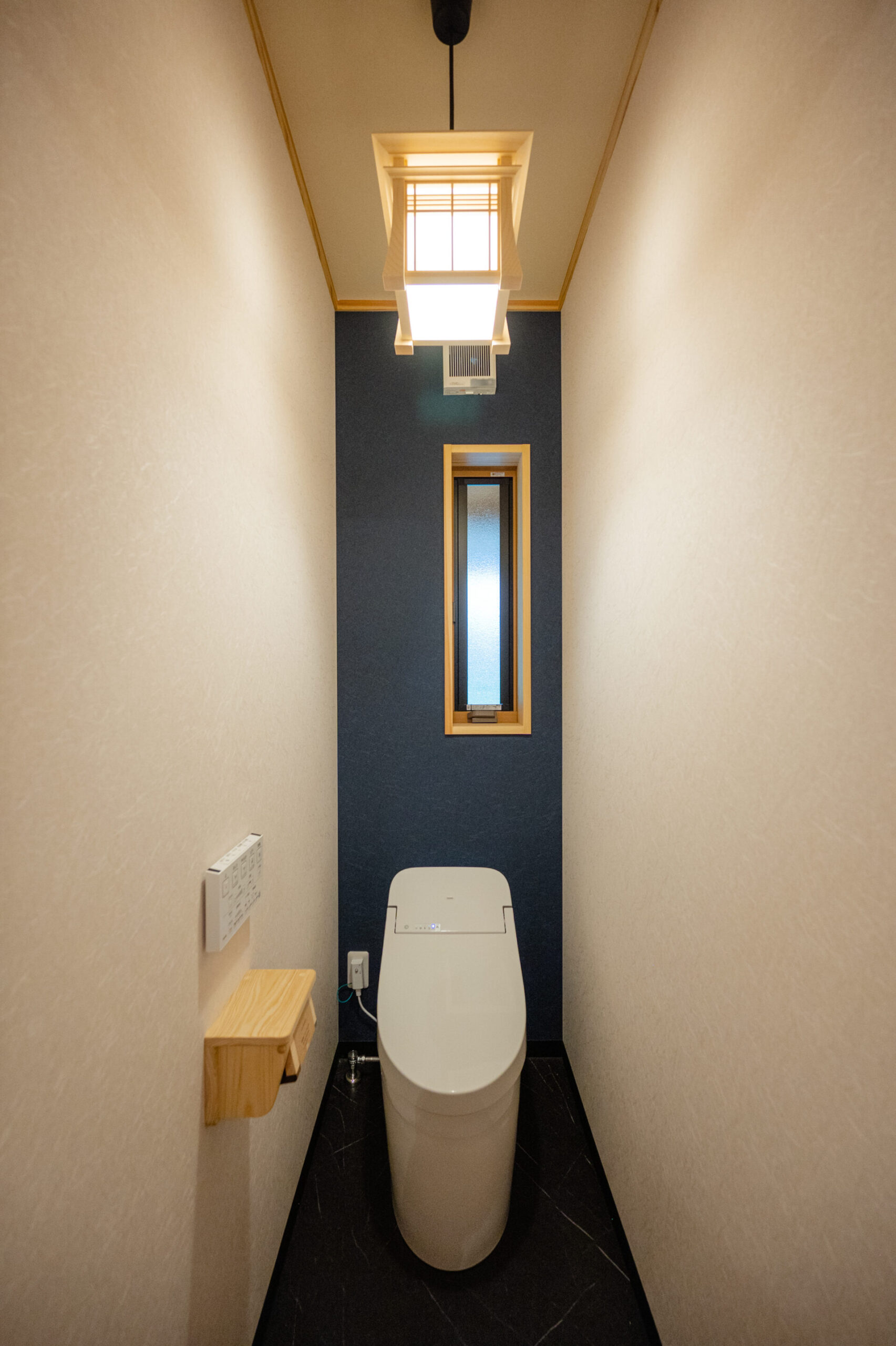 トイレは、行灯のような照明や壁紙で和の世界観を楽しめます。