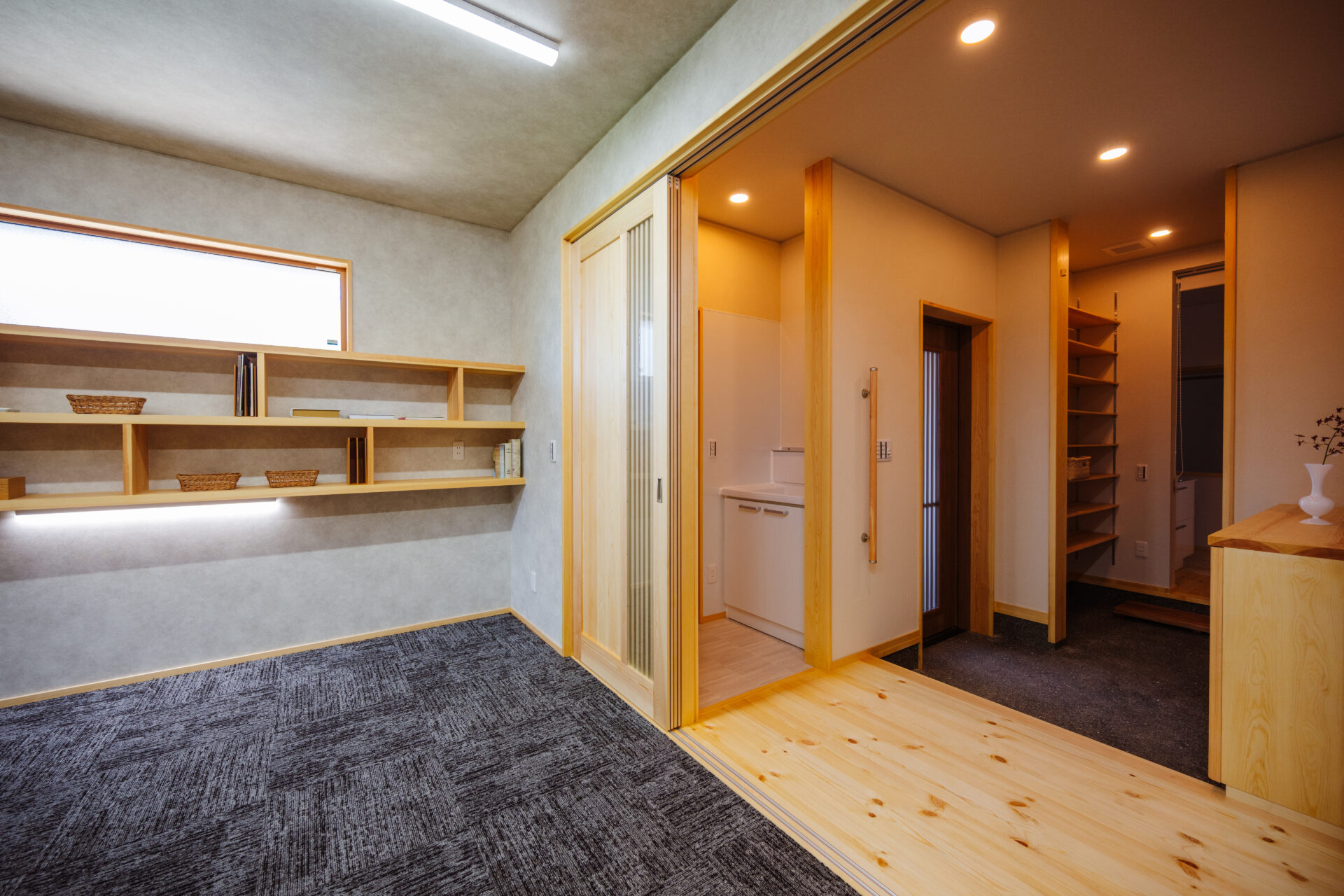 生徒さん用の洗面と奥にはトイレを設け、生活空間とは分けています。
