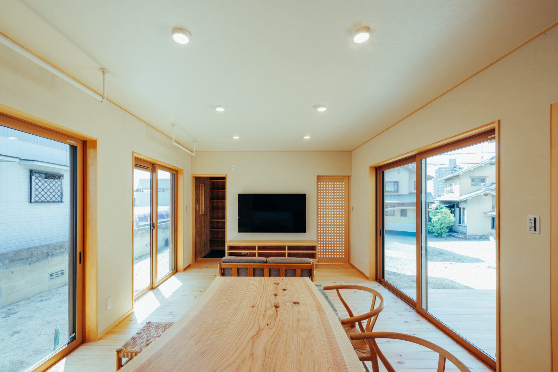 わんちゃんと暮らす中庭のある平屋が完成しました。26坪のコンパクトでありつつ、収納や居室スペースも完備したコの字型設計のお家です。