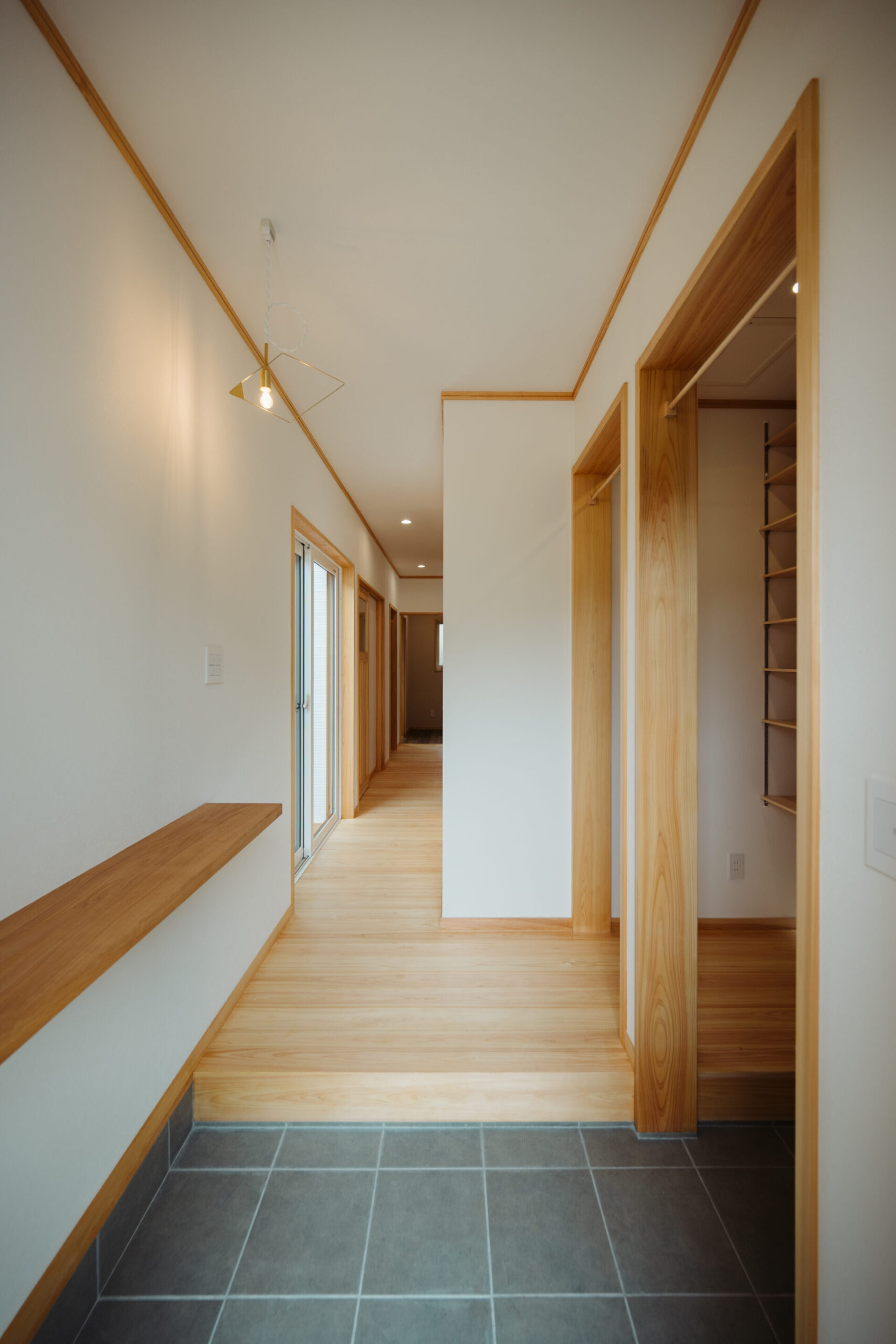 玄関にはちょっとしたカウンターと、たっぷりの土間収納を設けています。
