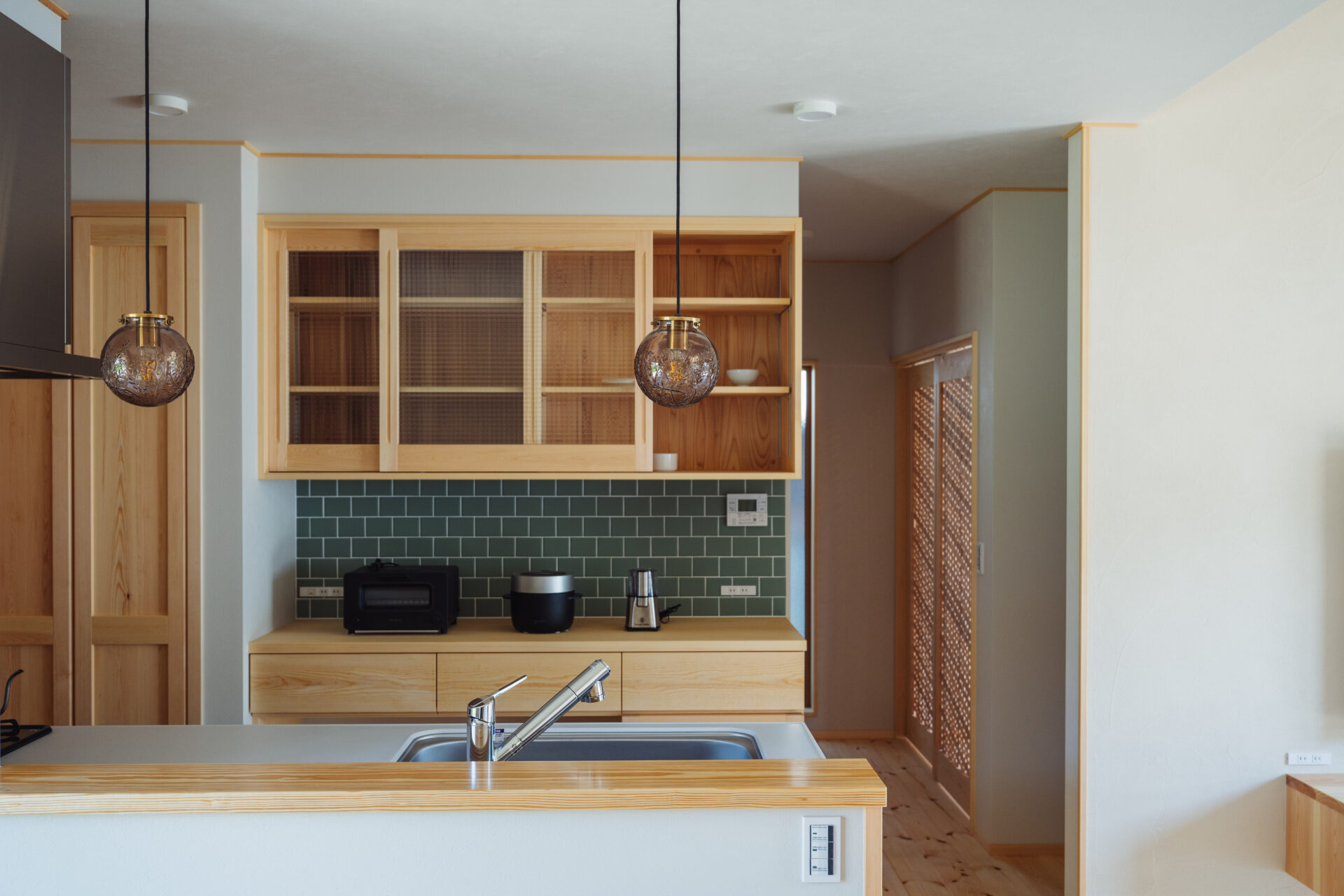 チェッカーガラスによって少しレトロな雰囲気になりました。ガラスの扉を使うことで抜け感が出ます。