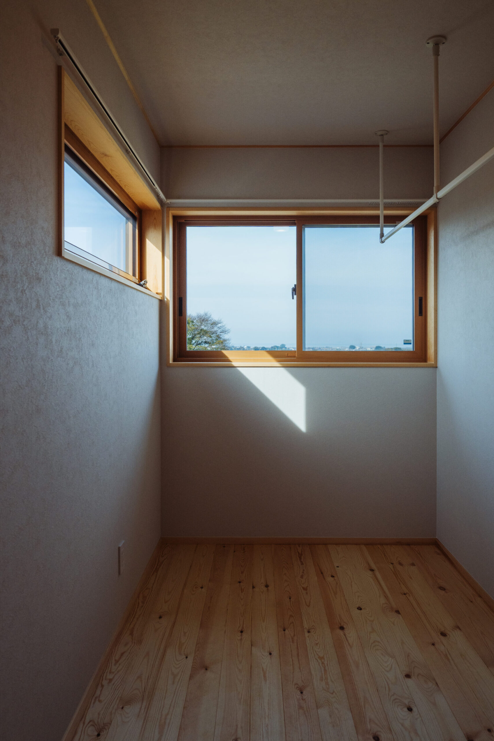 二階には物干しスペースも完備。日当たりも景色も良いため、洗濯作業が好きになりそうな空間です。