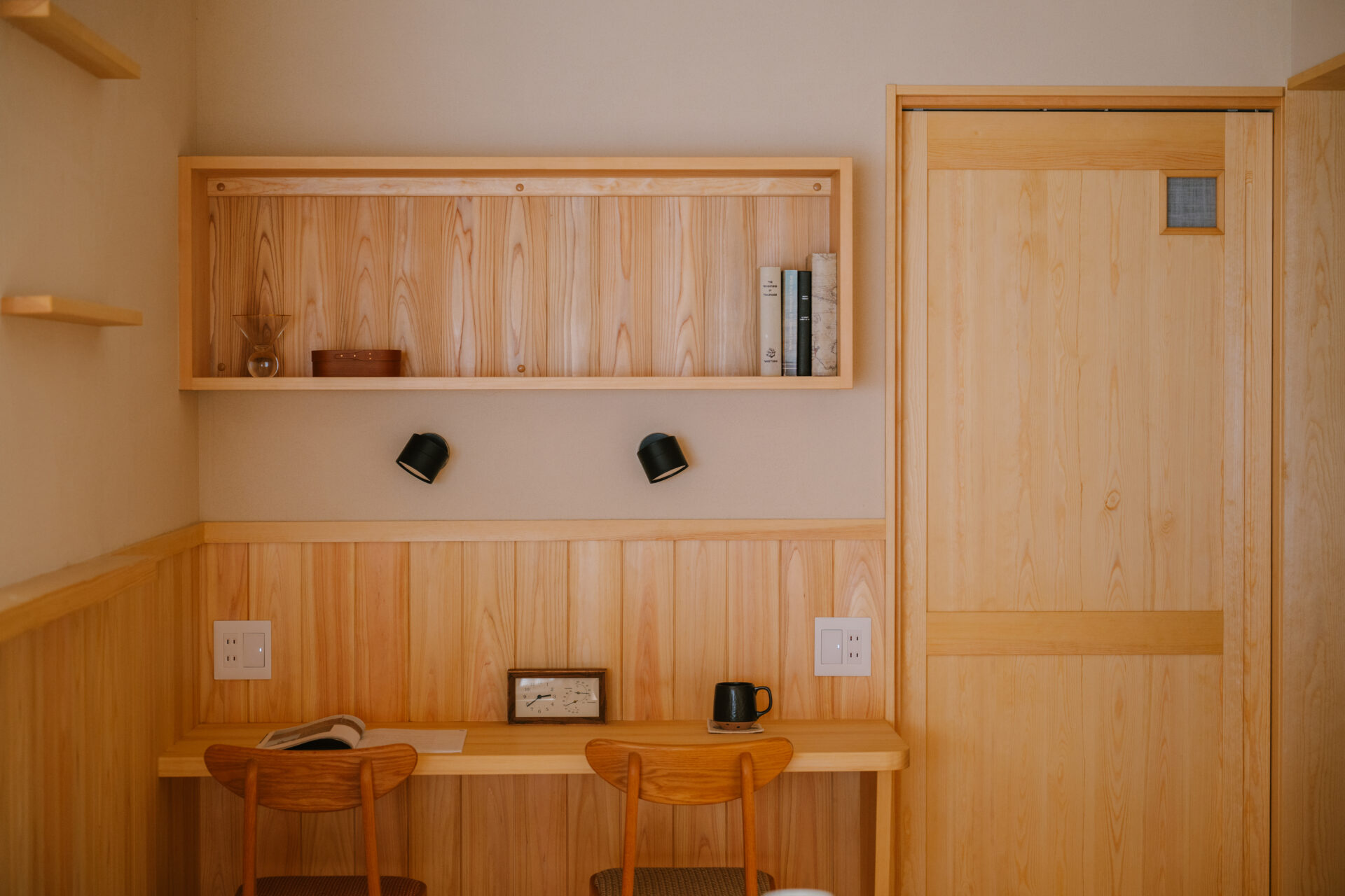 ダイニングのそばにはお子様の勉強スペースを完備。カウンターの高さや本棚のサイズも、造作家具ならではの細かい調整が可能です。